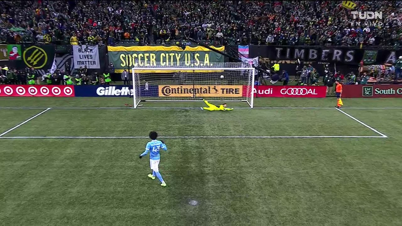 ¡Gol! Portland Timbers CF 1(2)| New York City FC 1(3). Cristhian Paredes (Portland Timbers CF) convirtió el penalti Disparo con la derecha por el centro del arco.
