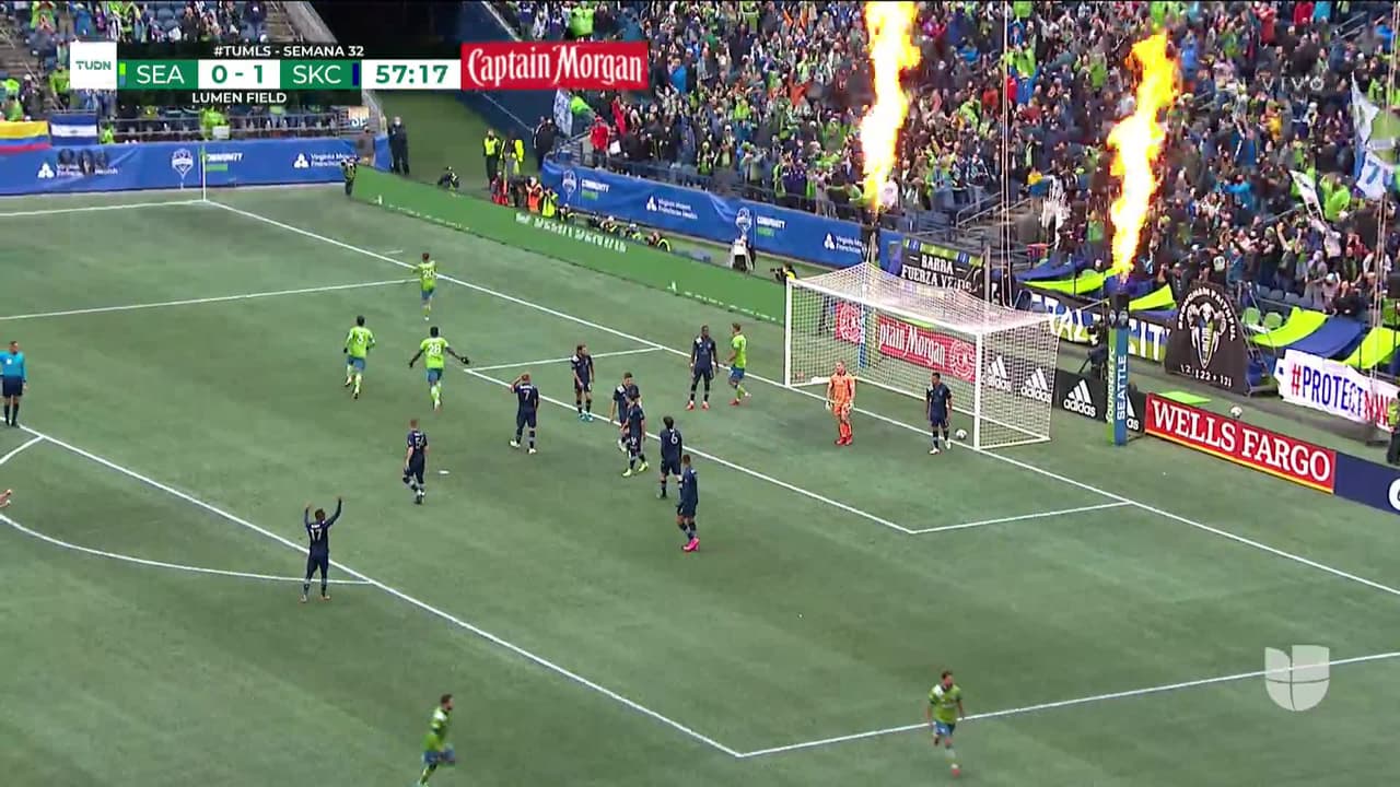 ¡Gol! Seattle Sounders FC 1| Sporting Kansas City 1. Nicolas Benezet (Seattle Sounders FC) disparo de cabeza desde muy cerca disparo rastrero| junto al palo izquierdo. Asistencia de Cristian Roldan tras un saque de esquina.