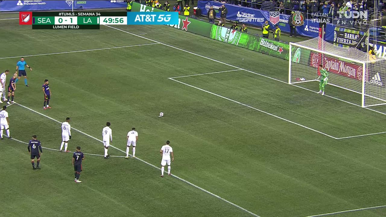 ¡Gol! Seattle Sounders FC 1| LA Galaxy 1. Raúl Ruidíaz (Seattle Sounders FC) convirtió el penalti Disparo con la derecha.