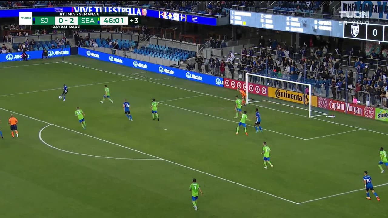 ¡Gol! SJ Earthquakes 1| Seattle Sounders FC 2. Cristian Espinoza (SJ Earthquakes) zurdazo desde el centro del área.