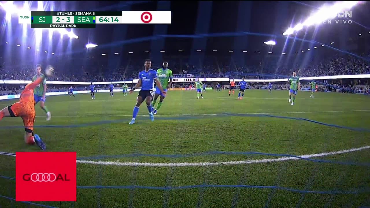 ¡Gol! SJ Earthquakes 3| Seattle Sounders FC 3. Jackson Yueill (SJ Earthquakes) Disparo con la derecha desde el centro del área.