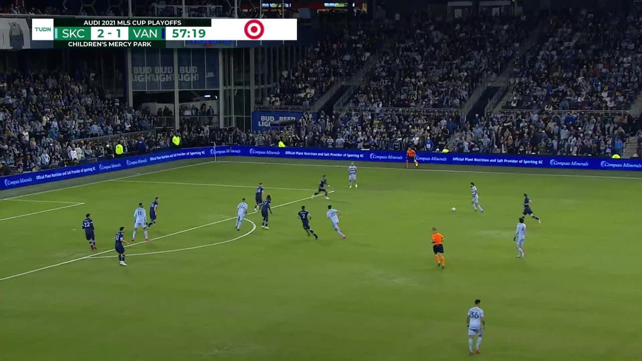 ¡Gol! Sporting Kansas City 3| Vancouver Whitecaps 1. Graham Zusi (Sporting Kansas City) Disparo con la derecha desde fuera del área al ángulo superior izquierdo. Asistencia de Dániel Sallói.