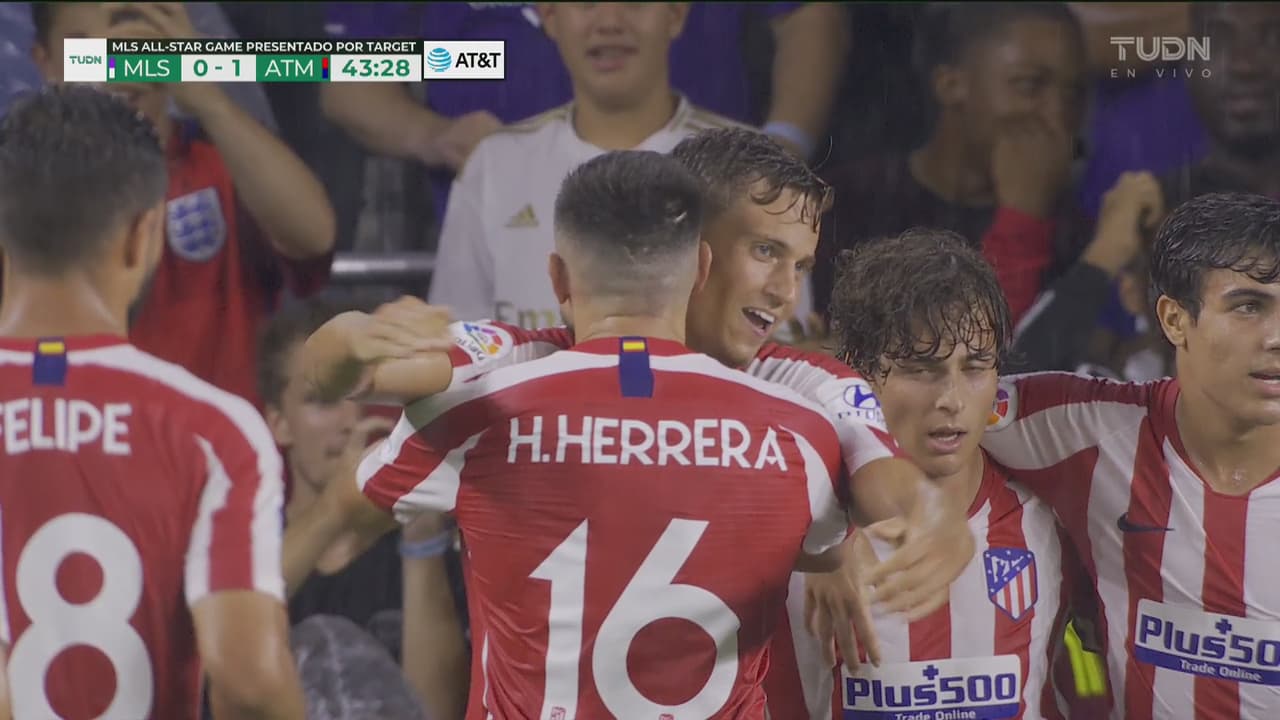 Rodrigo Riquelme dio un sensacional pase de gol y Marcos Llorente la mandó a guardar para marcar el 0-1 a favor del Atlético de Madrid ante las estrellas de la MLS.