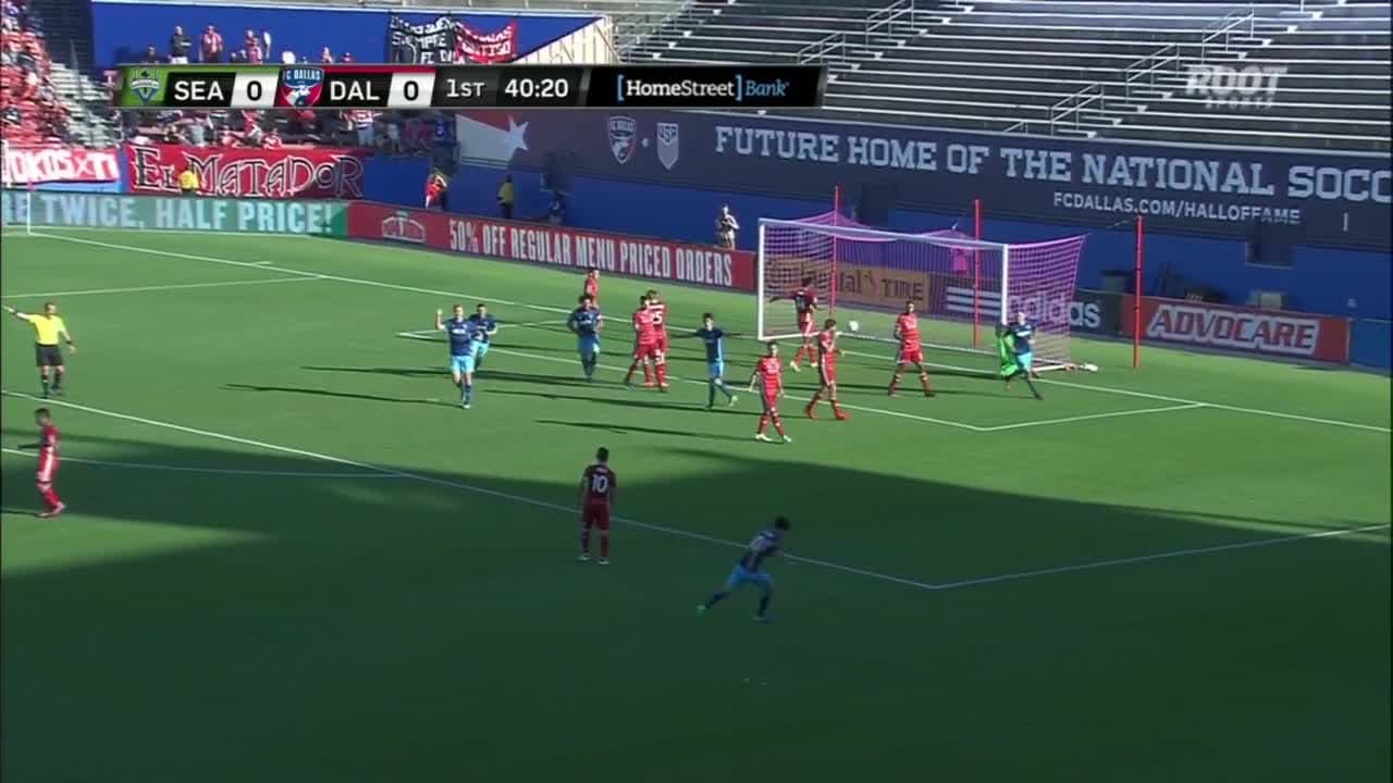 Un sutil disparo desde fuera del área que se le clavó en la base del palo al arquero.