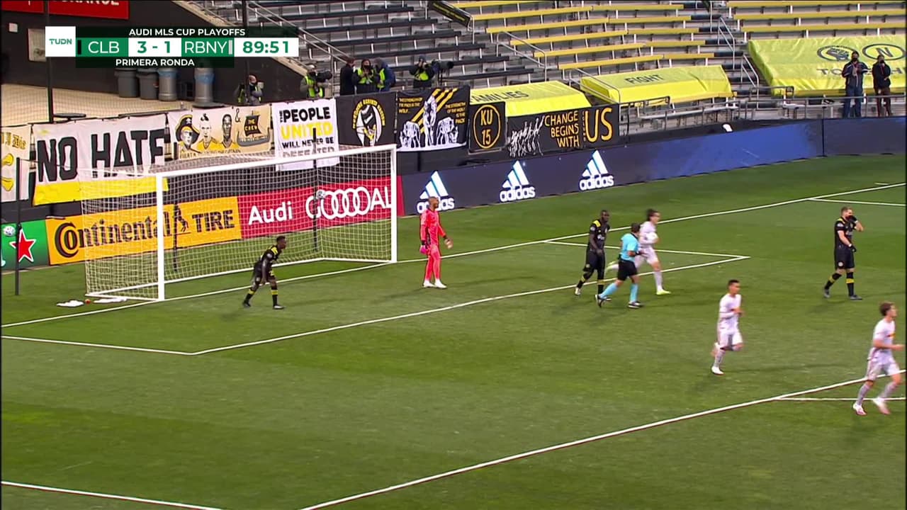 ¡Gol! Columbus Crew SC 3| New York Red Bulls 2. Brian White (New York Red Bulls) zurdazo desde el centro del área disparo rastrero| junto al palo izquierdo. Asistencia de Jared Stroud.