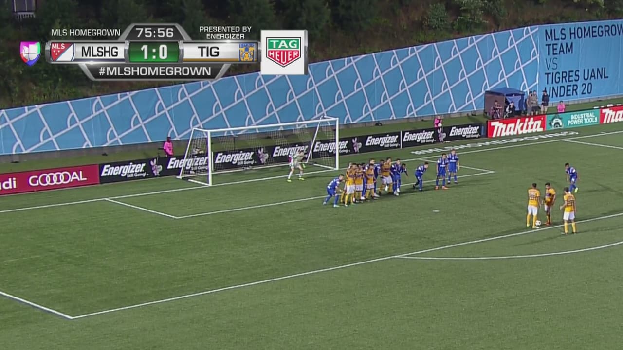 Adrián Garza cobra con disparo rasante para darle el empate a Tigres Sub20 1-1 ante MLSHG.