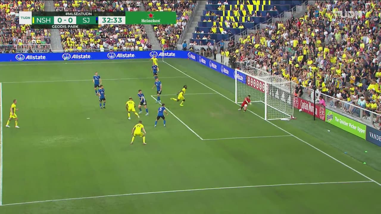 El delantero de Nashville remató solo, pero el arquero de San José hizo una gran desviada al 33’.