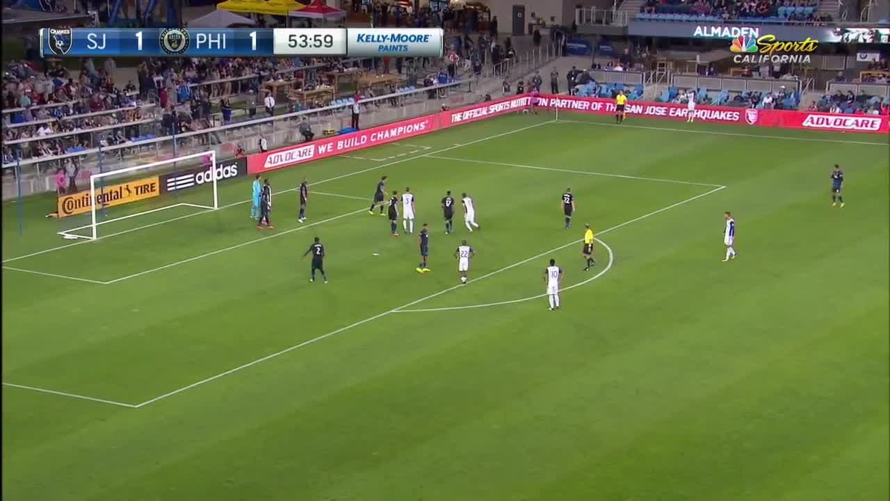 El mediocampista del ‘Union’ aprovechó estar desmarcado y con un remate fuerte y rastrero, consigue el 2-1 sobre los San Jose Earthquakes.