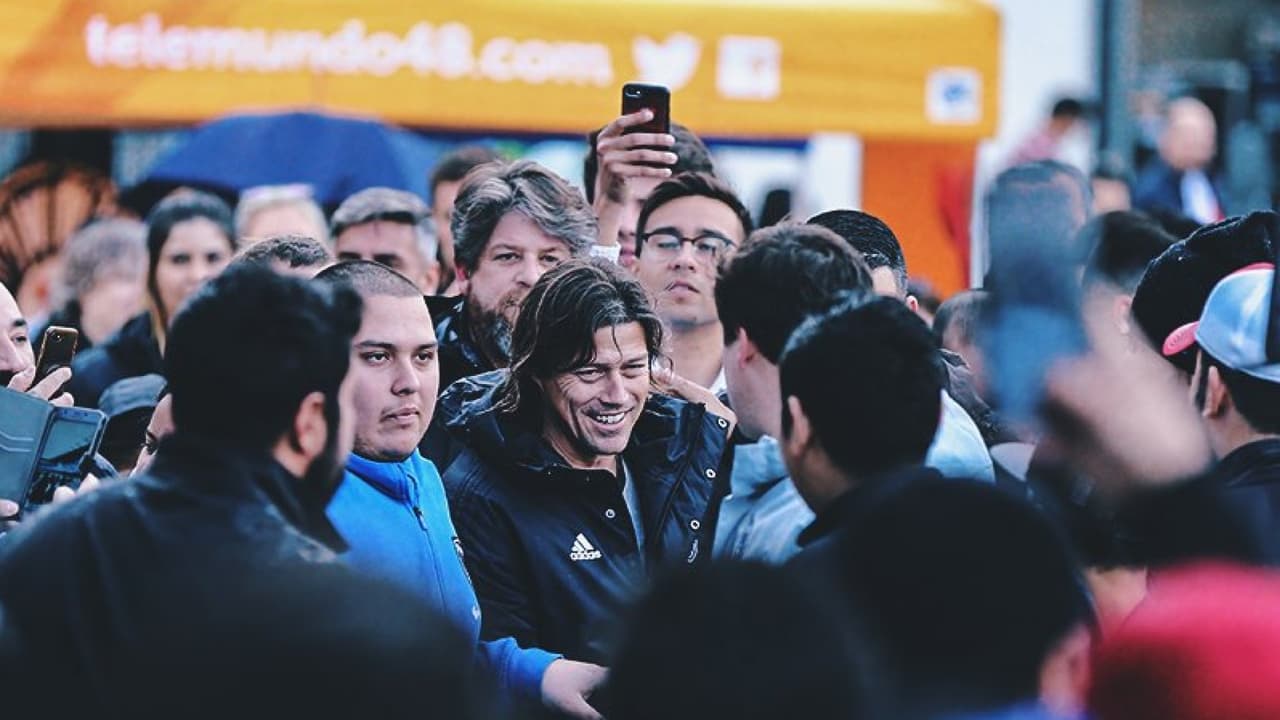 A pesar de la lluvia, el estratega argentino bajó de la tarima para compartir unas palabras con los seguidores del conjunto de la MLS.