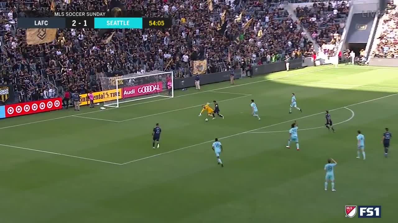 Nuevamente el atacante mexicano apela a su pierna izquierda, esta vez para superar al arquero en el uno contra uno y marcar el 3-1 sobre Seattle Sounders