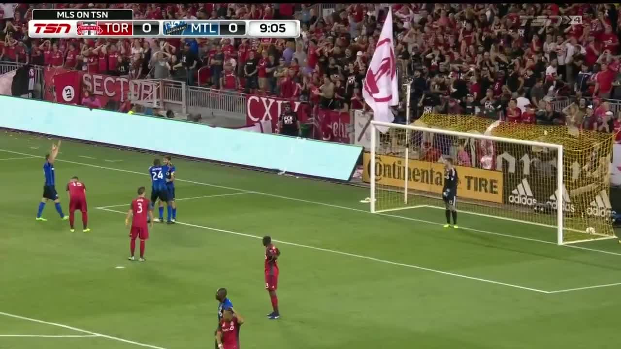 El arquero de Toronto despejó, Piatti salto y le dio la espalda al balón. El esférico le rebotó y se fue al fondo del arco dándole una tempranera ventaja a Montreal.