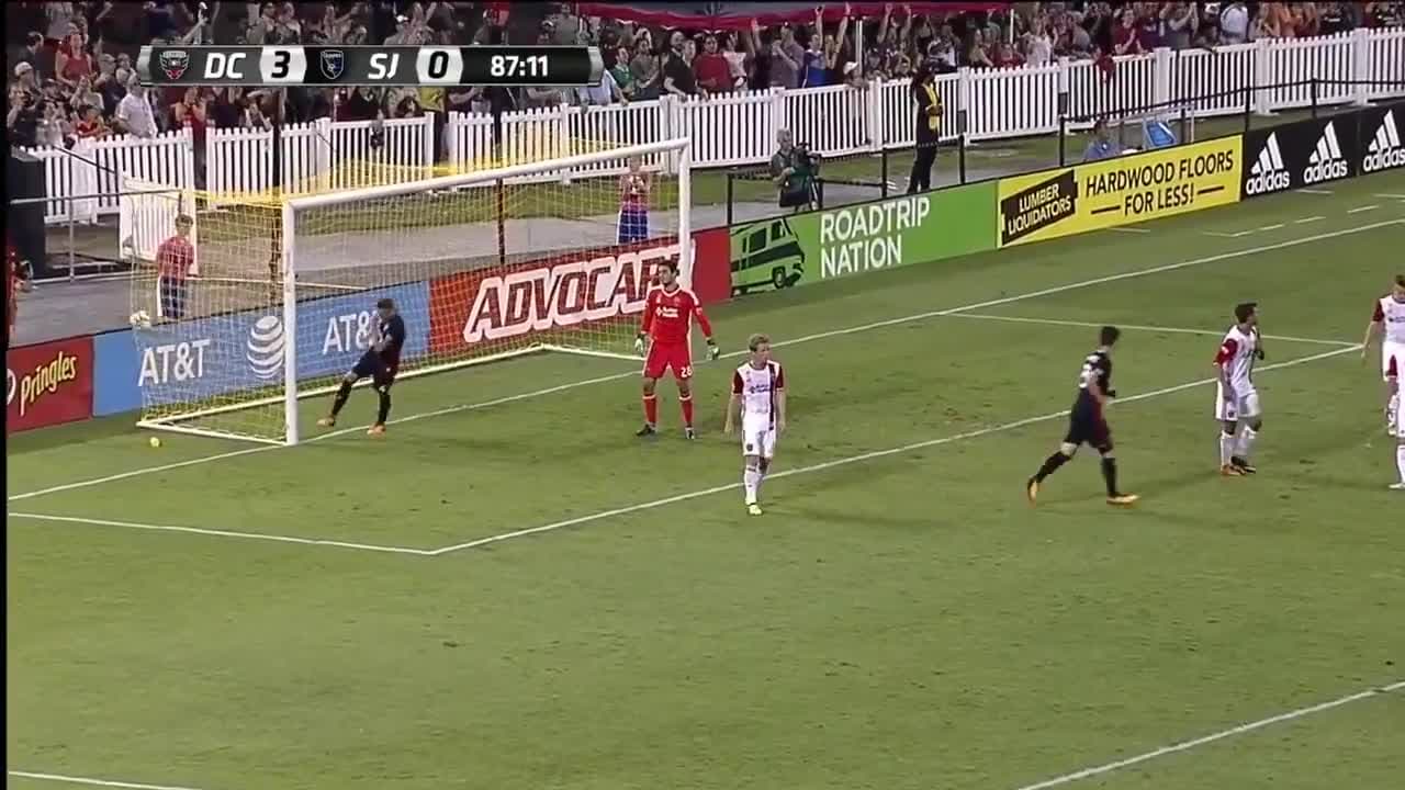 Con un zurdazo impresionante de tiro libre, Patrick Mullins anota su cuarto tanto de la noche, en la goleada del DC United en casa sobre el equipo californiano.
