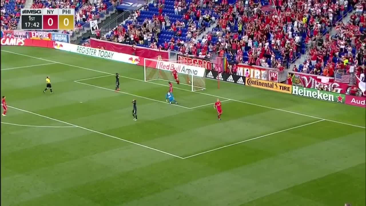 Tim Parker, defensor del New York Red Bulls, evitó la notación al parar el balón con la cara sobre la línea de gol.