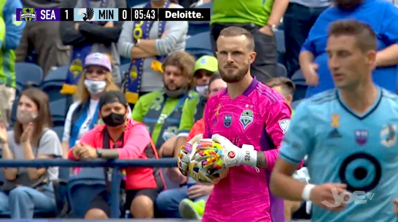 El cancerbero de Seattle Sounders, Stefan Frei, estuvo atento y atajó un zurdazo de Jacori Hayes en la recta final del partido.