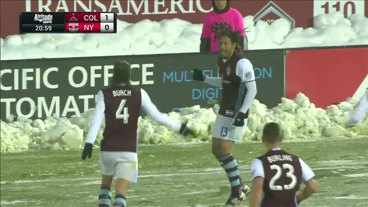 Red Bulls consiguieron el empate al minuto 60 tras un tiro de esquina cobrado por Sacha Kljestan que fue devuelto por la defensa de los Rapids. El mediocampista neoyorquino volvió a levantar la pelota desde el mismo costado encontrando la cabeza del defensor Ronald Zubar, quien se elevó sin marca enviando la pelota naranja -por la nieve- al fondo de la red.