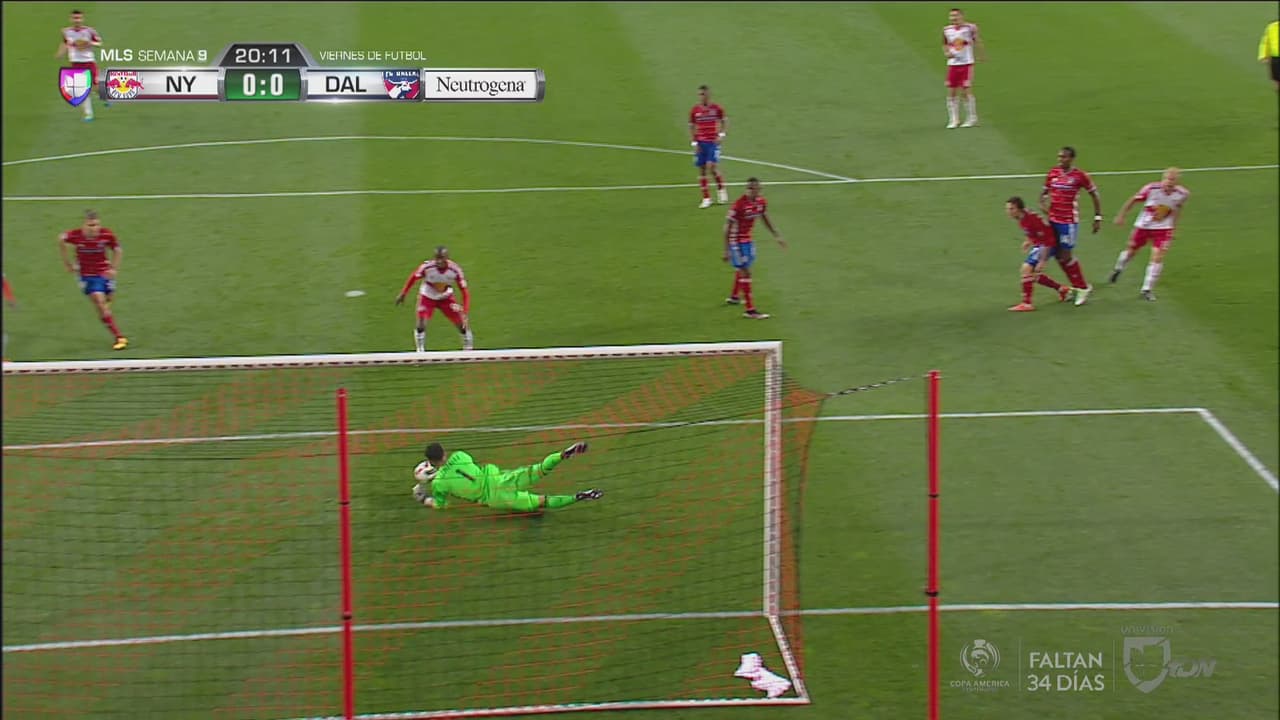El arquero de FC Dallas detiene como puede una embestida de New York.