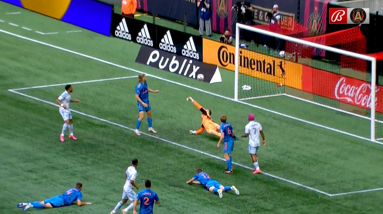 El cancerbero de Nashville SC evitó el segundo gol de Atlanta United al atajar con una mano un peligroso disparo del paraguayo Erik López.