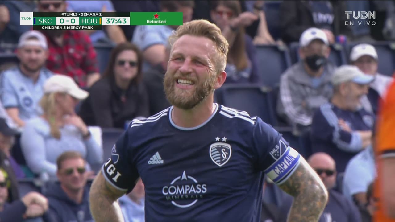 El extremo del Sporting Kansas City recibió la pelota a las afueras del área y sacó el disparo que se fue desviado al 37’.