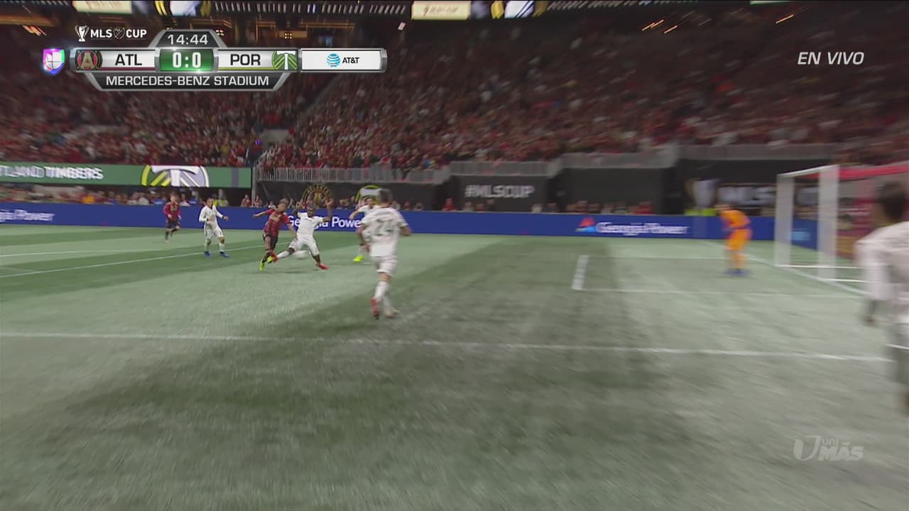 La MLS Cup tuvo su primera jugada polémica al 14’, cuando el jugador del Atlanta United fue derribado al entrar al área para rematar un servicio.