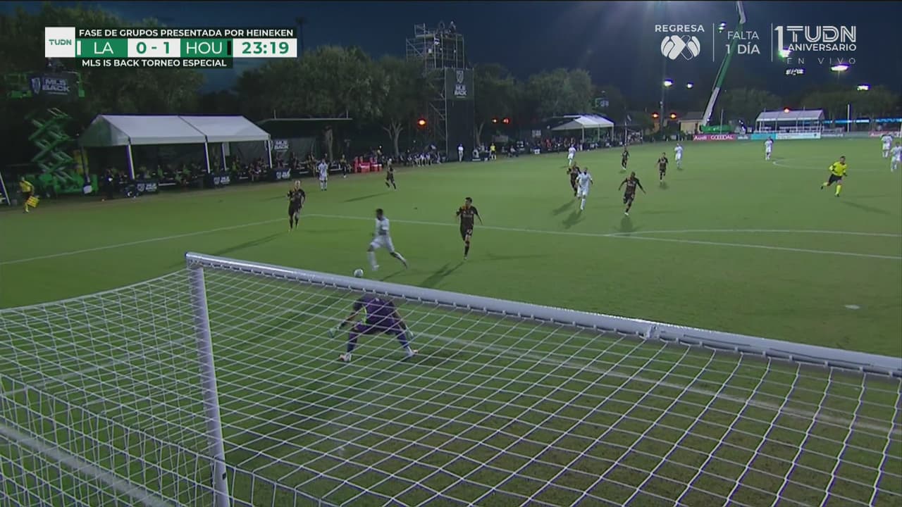 El volante del Galaxy recibió un gran pase al vacío y cuando intentó definir abrió mucho el balón y se cerró el ángulo.