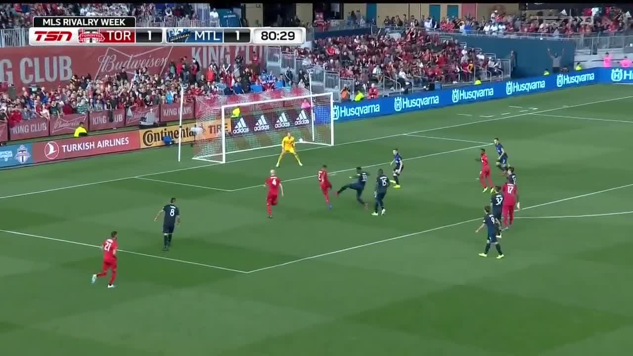El defensa y campeón con los 'escarlatas' en el 2017, define con la derecha para marcar el 2-1 de su equipo en el derbi canadiense ante Montreal Impact.