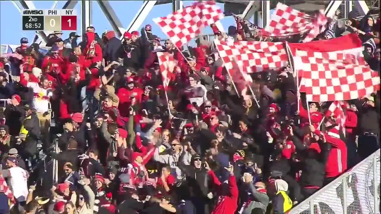Red Bulls hizo un cambio en el comienzo de la segunda parte. Derrick Etienne Jr. entró por el lesionado Mark Rzatkowski. El ingreso del haitiano obligó a Red Bulls a jugar más vertical. En su primer saque de esquina encontró el gol por una mano en el área de un jugador de Philadelphia. Kaku se encargó del penalti para adelantar a Red Bulls 1-0.