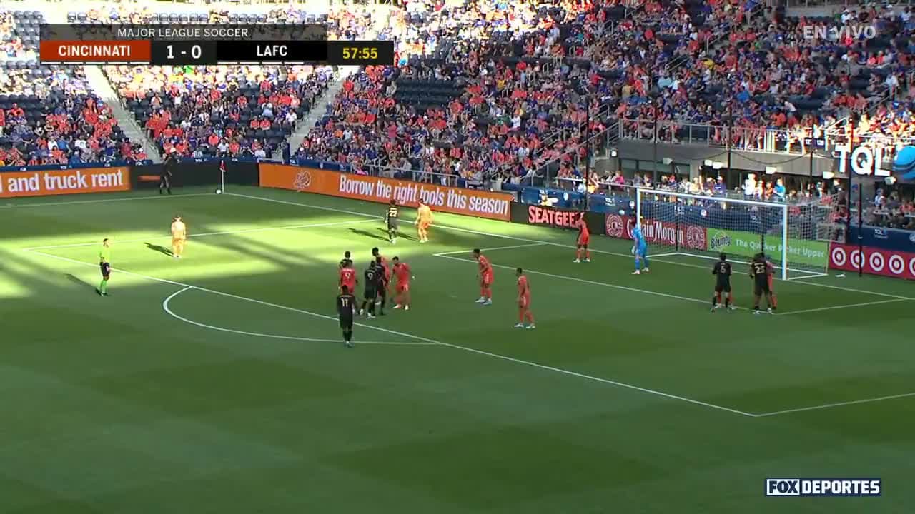 Carlos Vela cobra el tiro de esquina y tras una serie de rebotes, el internacional estadounidense saca el disparo para el primero de los californianos.
