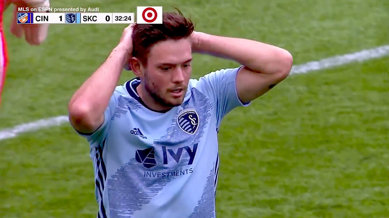 El delantero Kelyn Rowe tuvo en sus pies el gol del empate para Sporting KC, pero falló su remate solo frente al portero.