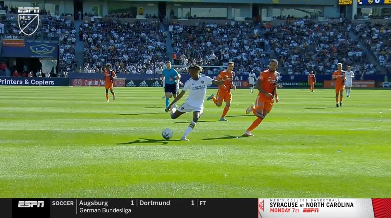 LA Galaxy estuvo muy cerca de abrir el marcador ante New York City FC, pero el cancerbero Sean Johnson evitó la anotación.