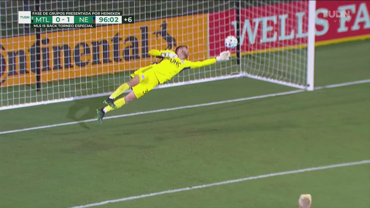 El portero del New England Revolution salvó en el último minuto a su equipo con esta soberbia atajada, tras disparo potente del marfileño Ballou Tabla.