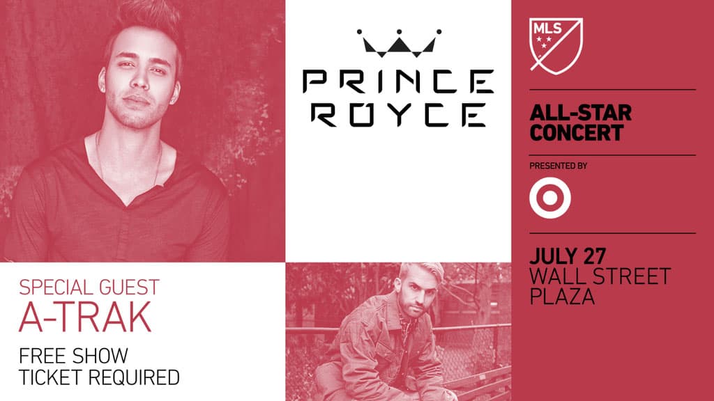 La super estrella latina y artista multiplatino Prince Royce será el encargado de brindar el Concierto del MLS All-Star presentado por Target el sábado 27 de julio en la Wall Street Plaza de la ciudad de Orlando.