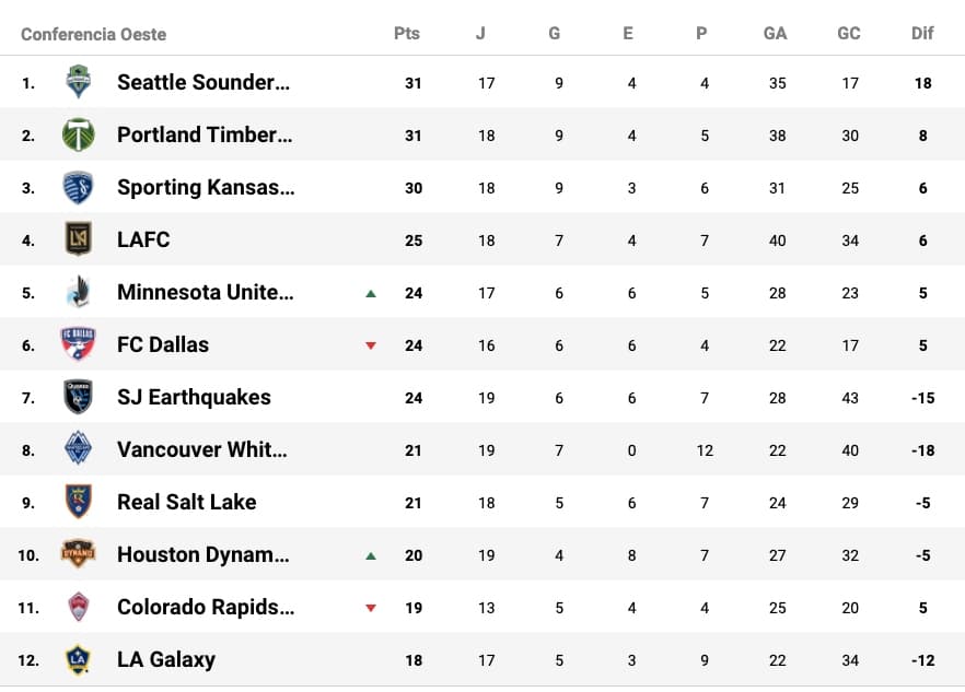 Los líderes en el Oeste siguen siendo los clásicos de la región de Cascadia: Seattle Sounders y Portland Timbers, que empataron -respectivamente- ante San Jose Eartquakes y LAFC. El conjunto 'Oro y Negro' logró el 1-1 final gracias a un gol en tiempo de descuento de Christian Torres, de apenas 16 años.