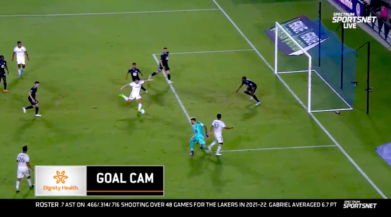 Con 10 en la cancha, el LA Galaxy se vio superado y al 36’, Franco Fragapane le ganó la espalda al lateral para clavar el 0-2.