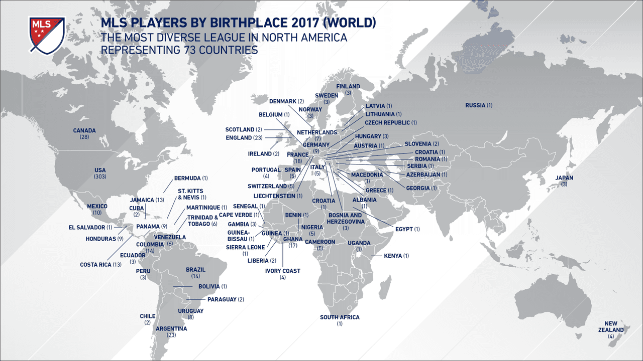 La Major League Soccer sigue siendo un ejemplo de la diversidad dentro del mundo del deporte, contando con futbolistas de 73 países distintos entre sus filas.