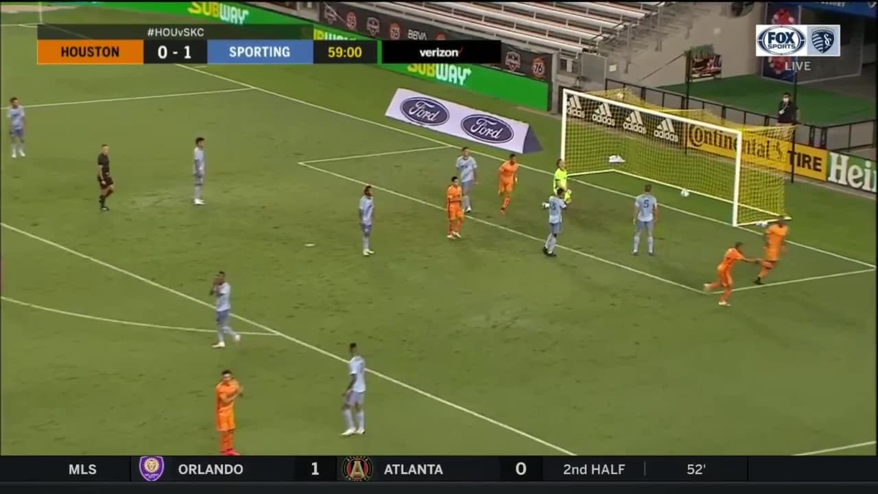El atacante Hondureño recibe el pase dentro del área y se cuadra el balón, para una gran definición de derecha, logrando el 1-1 ante Sporting KC