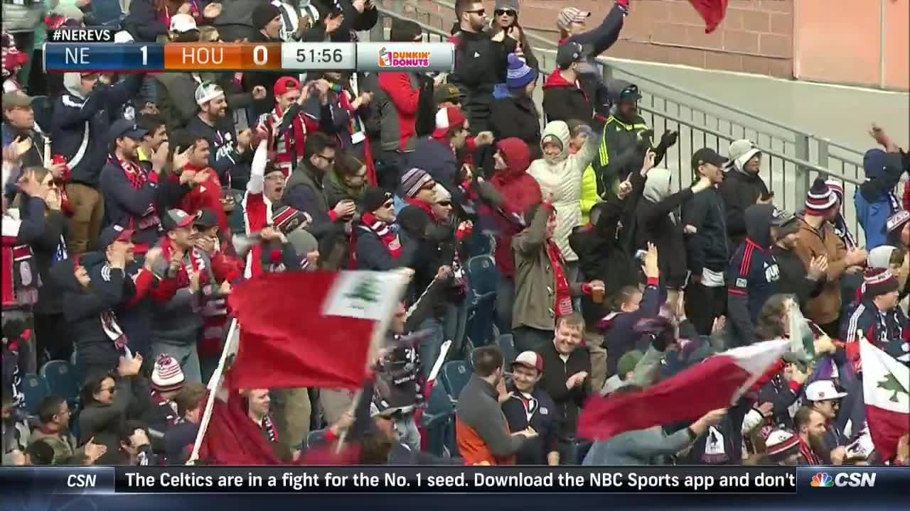 El delantero sierraleonés captura su propio rebote para adelantar al New England Revolution ante el Houston Dynamo.