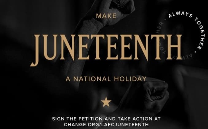 LAFC ha lanzado una iniciativa para reconocer al 'Juneteenth' como feriado federal en los Estados Unidos, con una petición en Change.org que tiene el objetivo de alcanzar las 100.000 firmas.