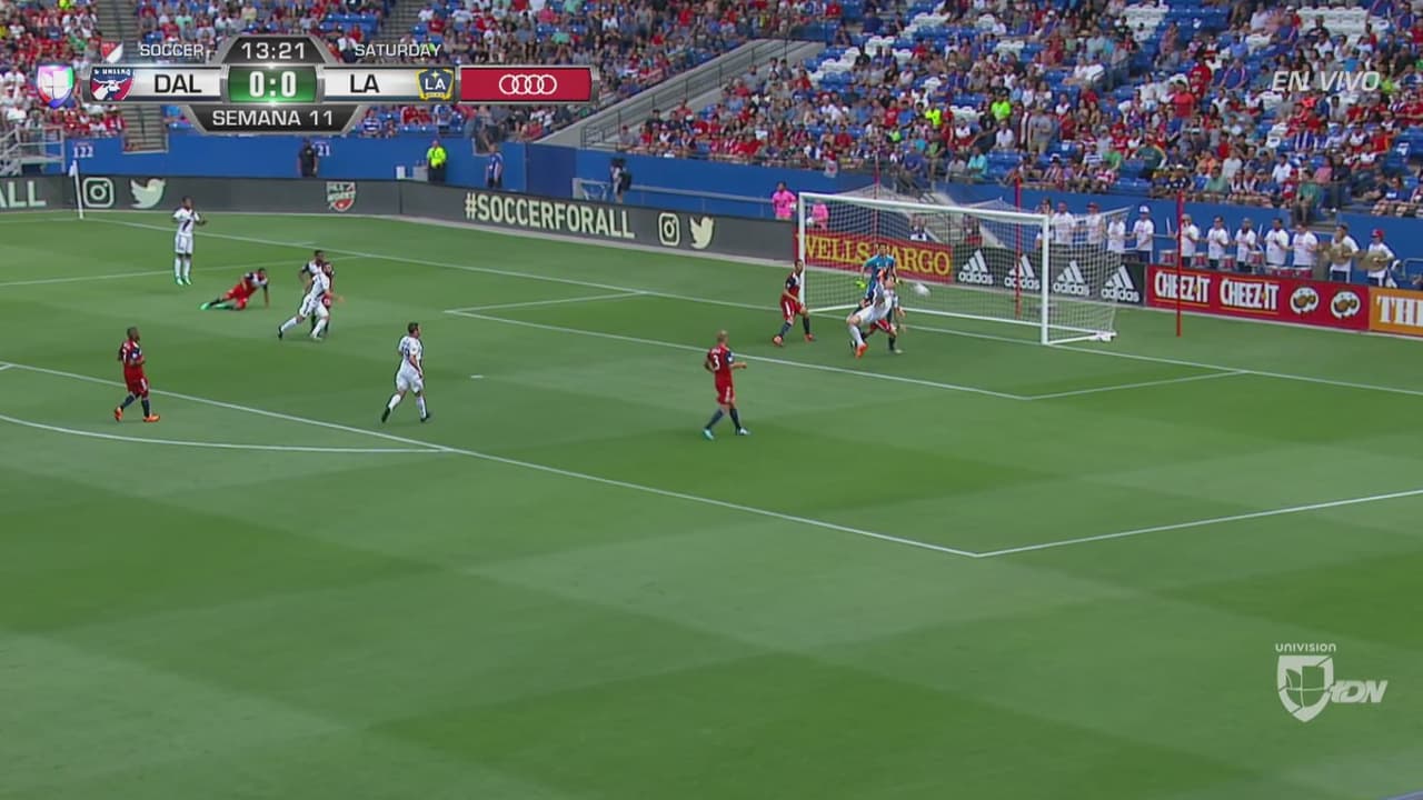 El delantero de LA Galaxy estuvo a punto de anotarle un golazo a FC Dallas, pero no pudo contactar el balón por el aire.