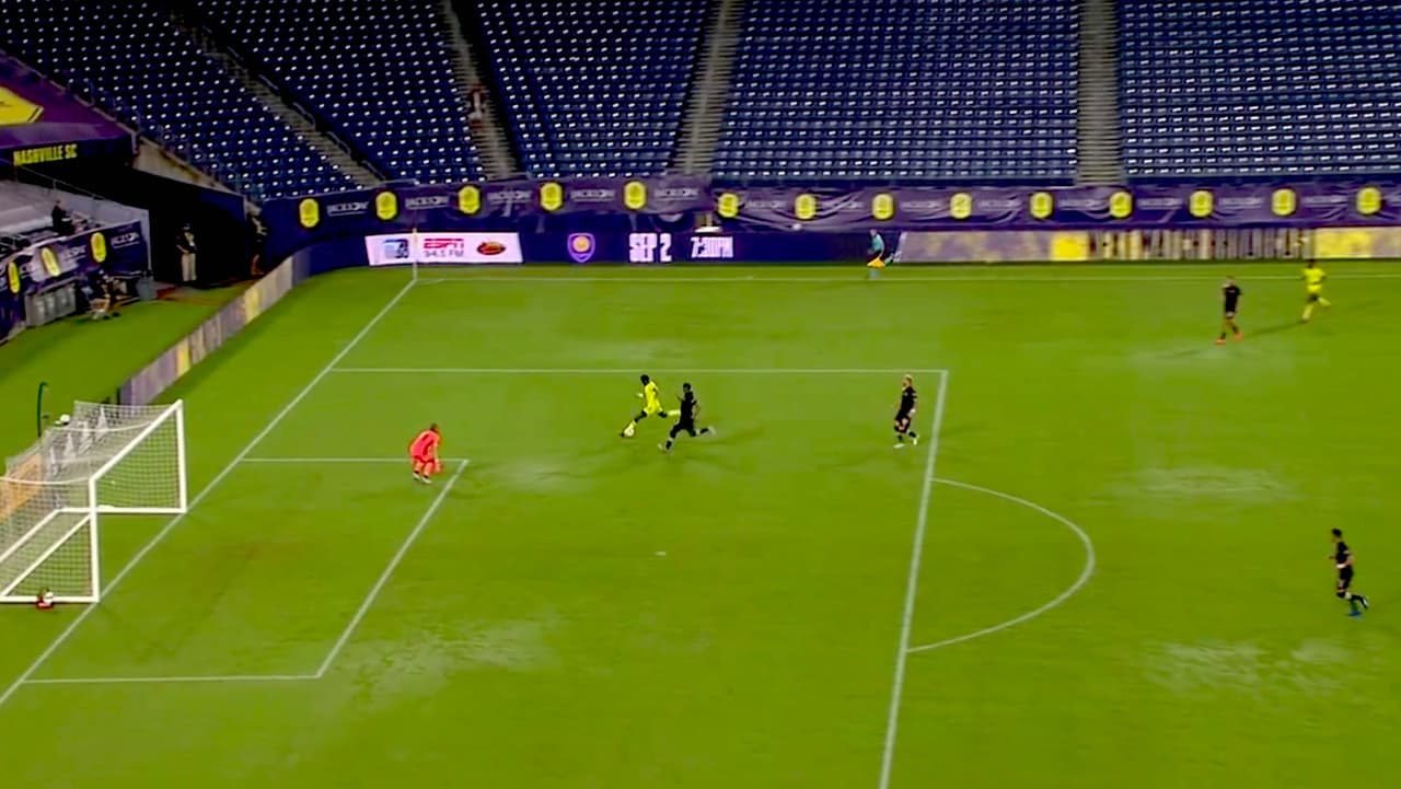 El senegalés Dominique Badji tuvo en sus pies el primer gol de Nashville SC, pero no pudo vencer al portero Luis Robles.