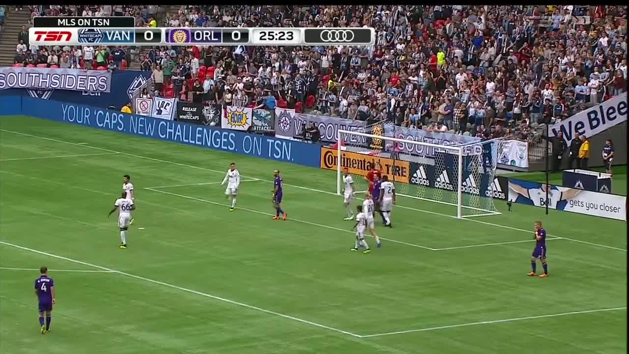 Chris Mueller se metió hasta el corazón del área y sacó un potente remate, pero una gran salvada de Brian Rowe evitó el gol.