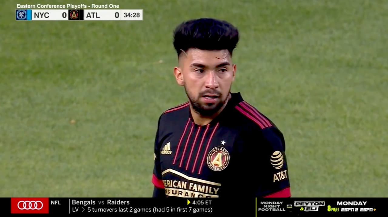 El mediocampista argentino intentó romper el cero en el marcador ante New York City FC, pero su disparo de su fue por un lado de la portería de Sean Johnson.