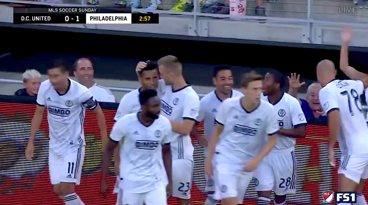 Philadelphia Union marcó el 0-1 en la casa de DC United apenas a los tres minutos del partido. Bedoya marcó su tercer gol de la temporada.