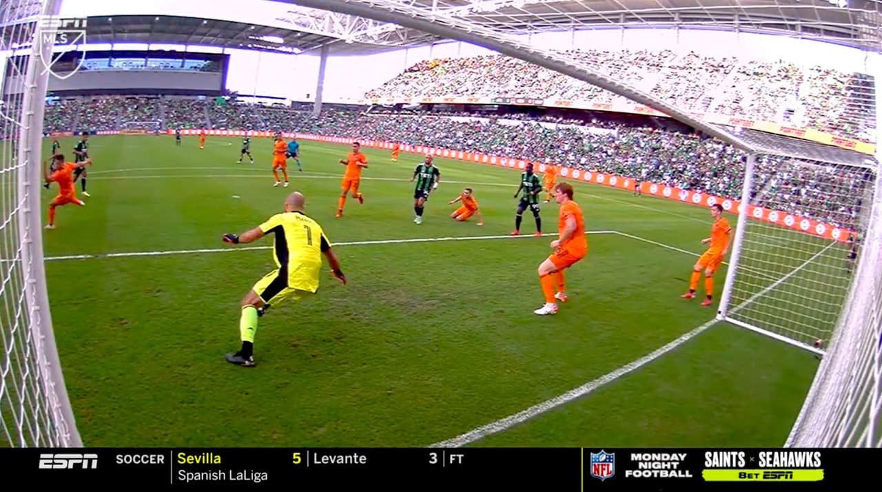 Austin FC estuvo muy cerca de marcar el tercer gol ante Houston Dynamo, pero el paraguayo Cecilio Domínguez no pudo definir en el corazón del área.