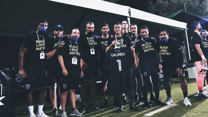 Previo al partido, en las redes sociales de San José, se publicaron un par de fotos en las que se veía una camiseta con el nombre de Galindo en el dorsal en los vestidores, y posteriormente Almeyda acompañado de su cuerpo técnico, posaron para una foto con la camiseta del ‘Maestro’.