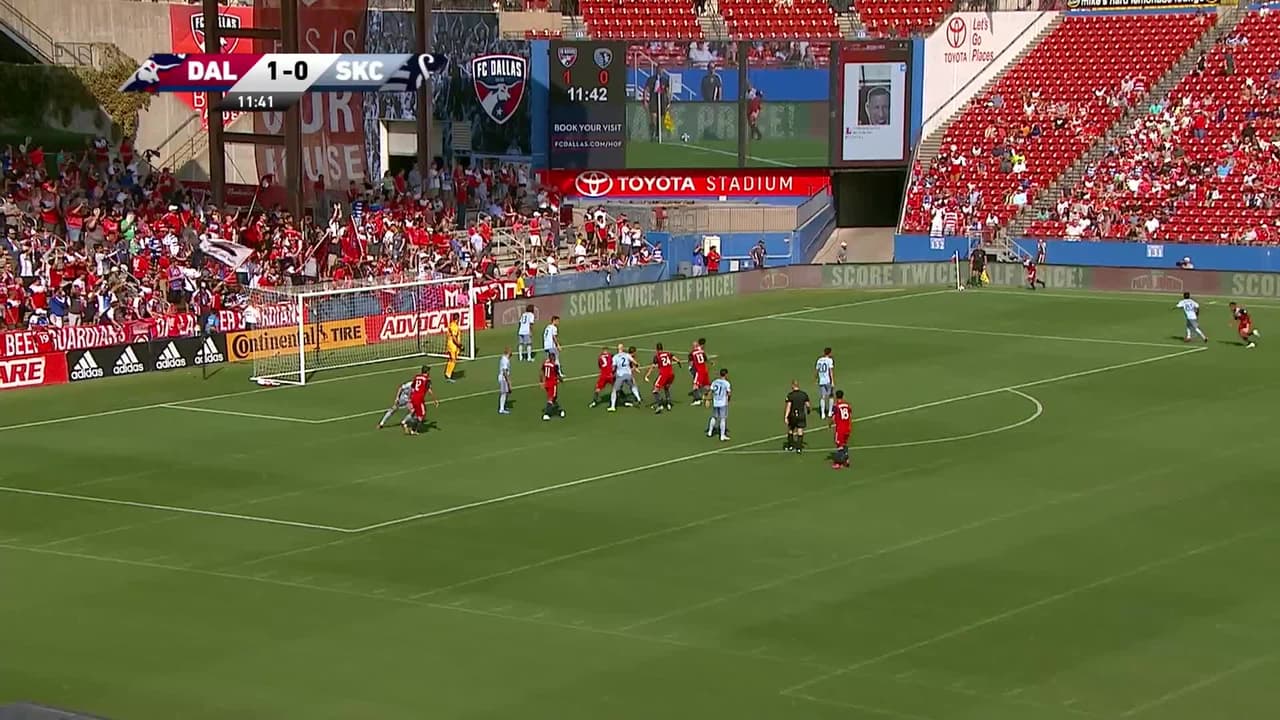 Matt Hedges la toca para meter el 2-0 de Dallas frente a Sporting Kansas