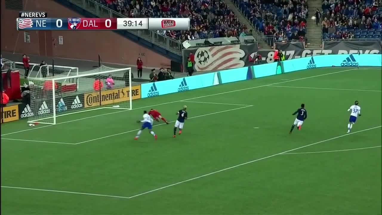 Matt Turner lo hace de bueno, ataja un cañonazo de Roland Lamah, New England 0-0 FC Dallas