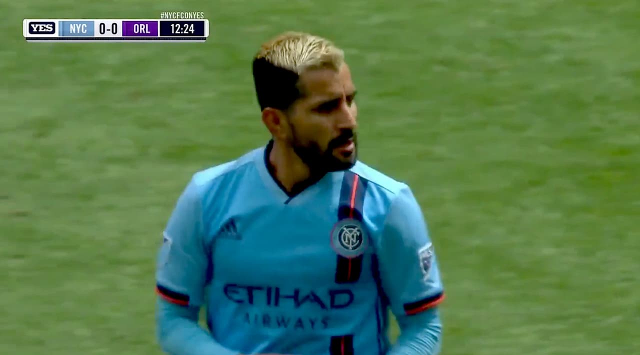 El argentino y delantero de New York City, Maximiliano Morález, intentó mover las redes desde fuera del área, pero el esférico se fue directo a las manos del portero Brian Rowe.