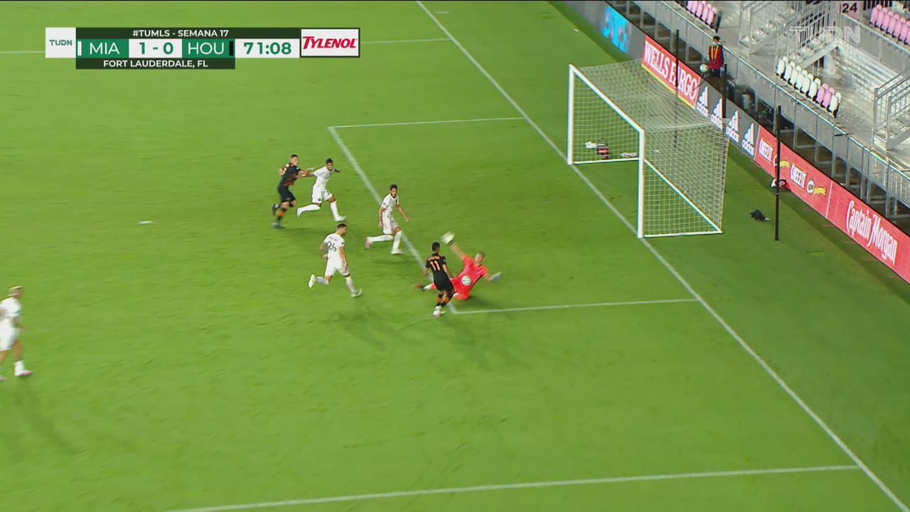 Tras un sutil pase de Darwin Quintero, Rodríguez definió pero achicó a tiempo el portero del Miami.