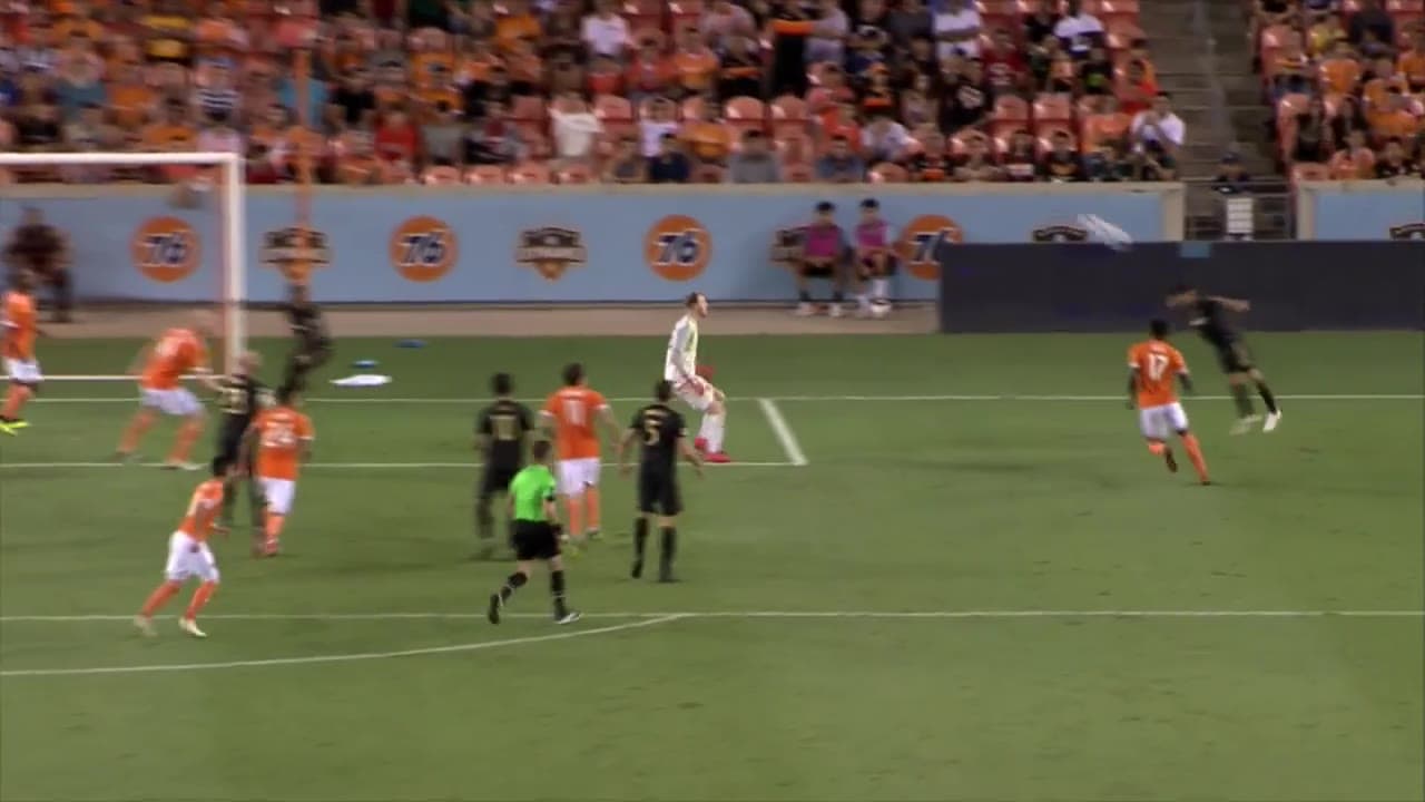 El uruguayo cabecea un balón que rebotó en la cancha del Houston Dynamo y hunde la pelota en la red para el 3-3 de los californianos