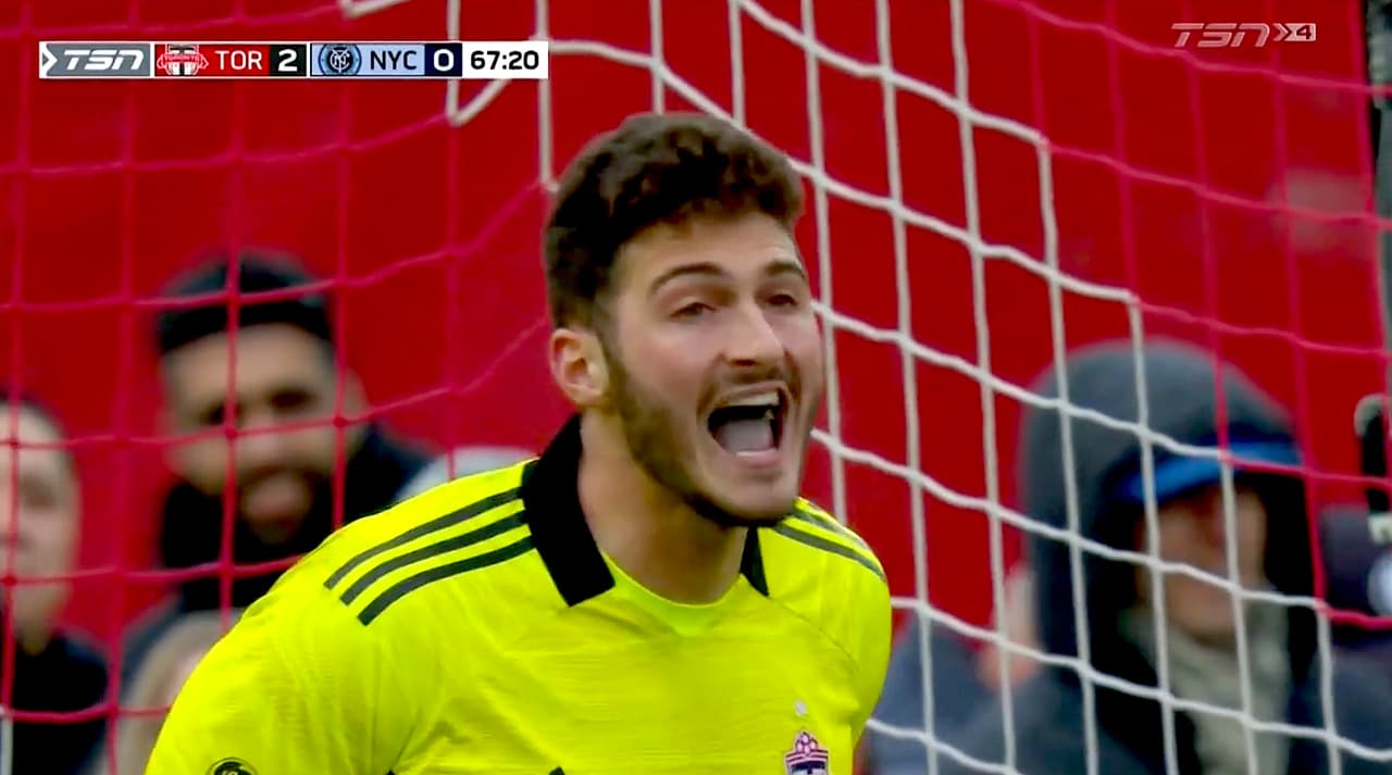El cancerbero de Toronto FC atajó un peligroso disparo de Keaton Parks y evitó la caída de su arco al minuto 67.